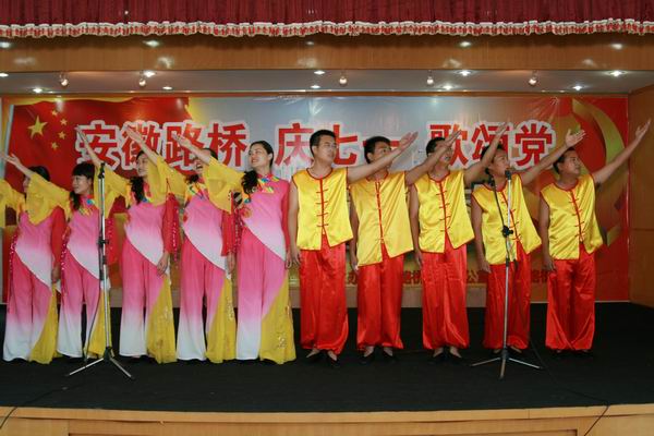 緊接著,慶七一,歌頌黨職工歌詠大賽開始。比賽在路面公司激昂的《沒有共產(chǎn)黨就沒有新中國》合唱聲中拉開序幕,比賽場上,參賽隊(duì)員精神飽滿,著裝整齊,懷著對中國共產(chǎn)黨、對祖國的深厚感情,熱情高歌《今天是你的生日我的中國》、《愛我中華》、《歌唱祖國》、《精忠報(bào)國》、《咱們工人有力量》、……發(fā)自肺腑的歌聲深深感動(dòng)了現(xiàn)場觀眾。