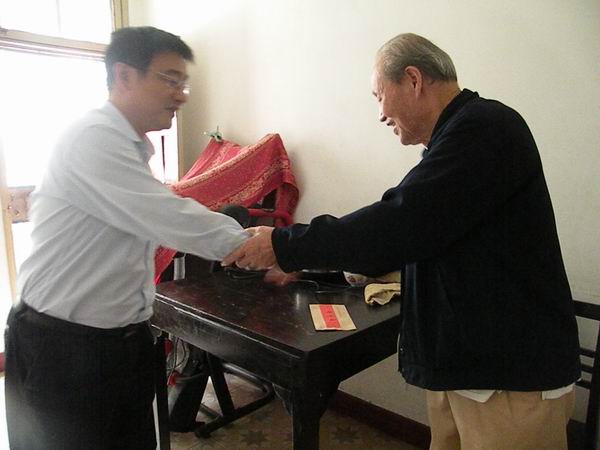 三節(jié)前公司領(lǐng)導(dǎo)到困難老職工家慰問 發(fā)布時間:2009年09月28日 來源:公司黨辦 發(fā)布人: 作者: 瀏覽:4559次 公司黨委積極開展“我們的節(jié)日·中秋”主題活動,組織在國慶、中秋、重陽三節(jié)前夕看望慰問困難老職工,讓他們共享改革開放的成果,為新中國成立60周年營造一個安定、文明、和諧的社會環(huán)境。9月21日至24日,公司總經(jīng)理、黨委副書記汪衛(wèi)東、副總經(jīng)理孫學(xué)軍等領(lǐng)導(dǎo)先后看望慰問困難老職工代表,給他們送去了節(jié)日的祝福,并帶去慰問金。