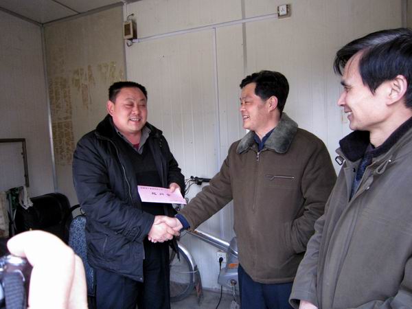 集團公司副總經(jīng)理戴良軍一行慰問公司困難職工 發(fā)布時間:2010年02月04日 來源:工會 發(fā)布人: 作者:胡運春 瀏覽:5155次 2月3日,在這新春佳節(jié)來臨之際,集團公司副總經(jīng)理戴良軍、黨委工作部主任吳曉伍、人力資源部副經(jīng)理朱金蓉一行在公司黨委書記陳光磊等同志的陪同下,先后對四分公司特困職工許來柱和二分公司困難黨員施靜進行了走訪慰問,給他們送去了慰問金,并送上新春的祝福,把黨組織的關懷、企業(yè)的溫暖送到了他們的家中。