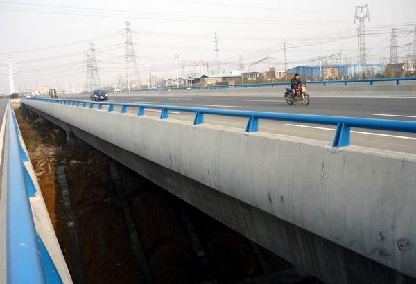 合安路出城口道路改建工程總造價(jià)1.47億元,公司承建了合安路互通立交主線橋和匝道橋。該橋全長(zhǎng)148米,寬70米,采取左右線方式跨越方興大道。07年5月開(kāi)工,工期8個(gè)月,把合肥市區(qū)、濱湖新區(qū)、經(jīng)濟(jì)技術(shù)開(kāi)發(fā)區(qū)和新橋機(jī)場(chǎng)等處的道路聯(lián)系在一起,極大地緩解區(qū)域交通壓力。公司在施工中,引進(jìn)旋挖鉆機(jī)等高新設(shè)備,通過(guò)采用新技術(shù)、新工藝、新材料,使適用性和經(jīng)濟(jì)性達(dá)到最佳結(jié)合點(diǎn),同時(shí)該工程也成為合肥南門出口處的一大亮點(diǎn)。