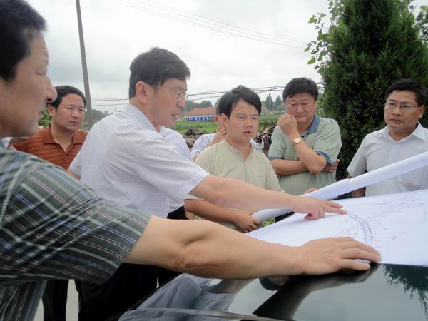 2010年7月15號上午,省交通廳副廳長羅寧、基建處長章厚忠、安徽省公路勘察設(shè)計(jì)院副院長王耀明、省高速公路控股集團(tuán)有限公司錢東升處長及副處長兼宣寧高速項(xiàng)目辦方昱主任、宣城市交通局局長牛傳勇和副局長梁世華,以及區(qū)高速公路指揮部、孫埠鎮(zhèn)相關(guān)負(fù)責(zé)人員,在我省路橋公司副總經(jīng)理盛明宏、宣寧02標(biāo)項(xiàng)目經(jīng)理張慶書的陪同下,蒞臨宣寧高速公路02標(biāo)項(xiàng)目現(xiàn)場,對K9+314支線上跨橋方案變更事宜進(jìn)行了現(xiàn)場會(huì)議討論。