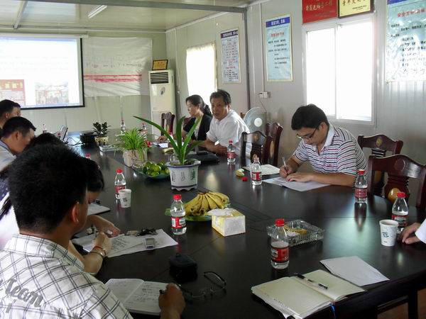李主席一行對(duì)該項(xiàng)目部“雙爭(zhēng)”競(jìng)賽活動(dòng)開展的各項(xiàng)情況一一做了檢查。在聽取了項(xiàng)目副經(jīng)理陸興生對(duì)活動(dòng)開展的方案、步驟、措施等內(nèi)容的匯報(bào)后,李主席、胡主任對(duì)項(xiàng)目開展的工作表示滿意。