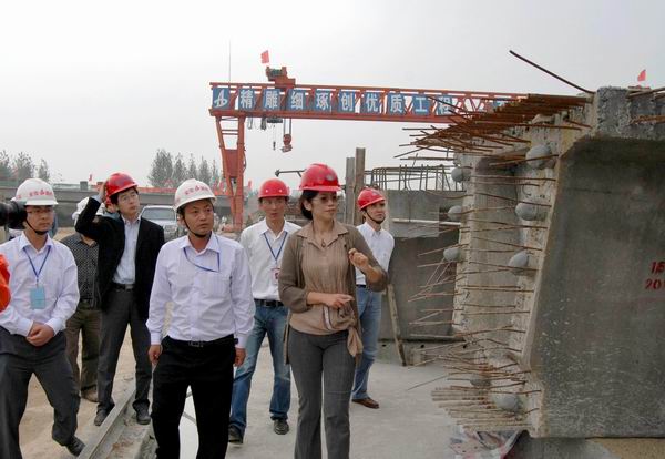 在宣寧高速02標項目部,張曉冰副局長與汪衛(wèi)東總經理親切交談,深入了解了公司的發(fā)展歷史,認真聽取了項目經理余躍對工程概況、工程進展等情況的匯報;并查看了項目部試驗室和儀器設備,檢查了試驗內業(yè)資料,對項目部各項工作給予了充分肯定。張曉冰副局長還實地察看了項目預制場、水陽江大橋,對施工現場科學組織、嚴控質量工藝、重視生產安全給予了高度好評。