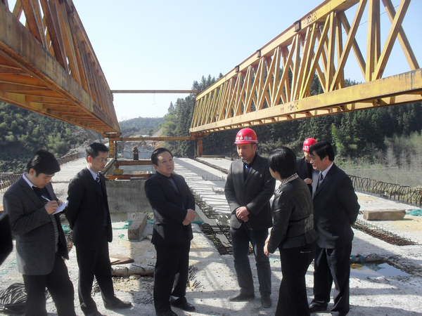 在金字牌大橋現(xiàn)場,項目經(jīng)理黃華就項目工程總體完成情況、剩余工程量、下步計劃安排以及金字牌跨皖贛鐵路橋的施工進展情況作了詳細匯報。王福宏書記深入到箱梁安裝施工現(xiàn)場,對施工進展情況進行了詳細的察看,對該標(biāo)段的建設(shè)情況表示了肯定;并要求該標(biāo)段在抓進度的同時要保證質(zhì)量、安全,確保圓滿完成剩余工程量。王福宏書記還代表黃山市委、市政府對該標(biāo)段建設(shè)者表示親切慰問。