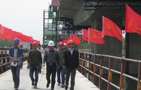 何局長一行聽取了公司總經(jīng)理助理傅月斌同志關(guān)于當(dāng)前施工總體情況的匯報,并深入到主橋施工現(xiàn)場,詳細詢問和查看了工程標(biāo)準(zhǔn)化建設(shè)和質(zhì)量安全情況,對該項目總體建設(shè)情況給予了肯定。