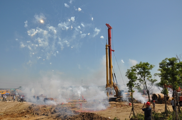 本次施工的首根樁基為方興大道主線(xiàn)橋P6-3。為保質(zhì)量、保安全的完成首根樁基施工,項(xiàng)目部提前謀劃,精心準(zhǔn)備,對(duì)施工過(guò)程中可能出現(xiàn)的問(wèn)題制定專(zhuān)門(mén)的預(yù)防措施,對(duì)各重難點(diǎn)工序進(jìn)行合理安排,技術(shù)人員全程現(xiàn)場(chǎng)指導(dǎo)施工。在大家的共同努力下順利完成了首根樁基的開(kāi)鉆,并于當(dāng)天完成灌注。