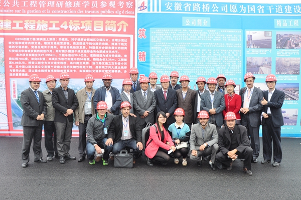 10月21日,阿爾及利亞公共工程管理研修班學(xué)員應(yīng)安徽建工集團(tuán)邀請(qǐng),來到公司G206改建工程4標(biāo)段參觀考察。集團(tuán)副總經(jīng)理許克順、總經(jīng)理助理汪衛(wèi)東、公司副總經(jīng)理錢申春等人陪同。