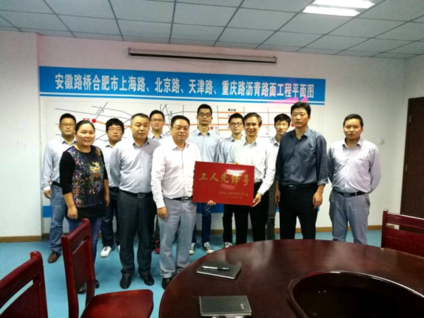 10月18日、20日, 集團(tuán)公司工會(huì)副主席吳曉伍一行來到公司承建的上海路路面項(xiàng)目、池州S321路面項(xiàng)目,分別對(duì) “工人先鋒號(hào)”和“職工書屋”創(chuàng)建工作進(jìn)行考核驗(yàn)收。公司工會(huì)主席楊建強(qiáng),總經(jīng)理助理、路面公司總經(jīng)理江仲明陪同。
