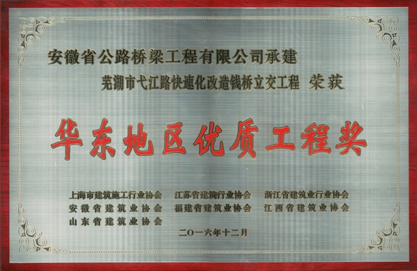 近日,由公司承建的G206公路(南崗-上派段)改建工程4標、蕪湖市弋江路快速化改造錢橋立交工程喜獲2016年度“華東地區(qū)優(yōu)質(zhì)工程獎”。