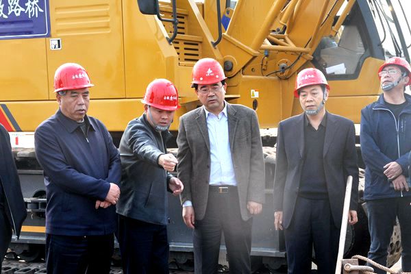 在施工現(xiàn)場,項目負(fù)責(zé)人介紹了黃河特大橋施工概況,對前期鋼便橋建設(shè)和樁基工藝進(jìn)行了詳細(xì)的說明。李軍星實地考察了大橋建設(shè),對項目鋼便橋建設(shè)給予了高度評價。