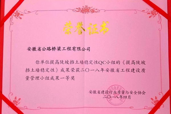 近期,由安徽省建設(shè)行業(yè)質(zhì)量與安全協(xié)會主辦的安徽省建筑業(yè)企業(yè)2018年QC小組活動成果交流會在合肥順利召開,358項成果參加了發(fā)布和交流。道路分公司展示的3項QC成果榮獲兩項一等獎和一項二等獎。