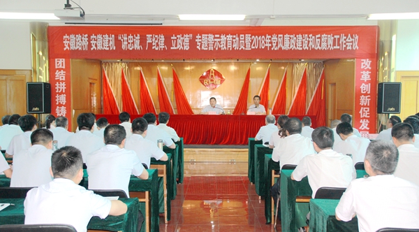 6月13日,公司在七樓會(huì)議室召開(kāi)“講忠誠(chéng)、嚴(yán)紀(jì)律、立政德”專(zhuān)題警示教育動(dòng)員暨2018年度黨風(fēng)廉政建設(shè)和反腐敗工作會(huì)議。公司領(lǐng)導(dǎo)班子成員、中層干部和安徽建機(jī)中層以上干部參加會(huì)議,公司黨委書(shū)記、董事長(zhǎng)、總經(jīng)理孫學(xué)軍出席會(huì)議并作動(dòng)員講話,會(huì)議由公司黨委委員、紀(jì)委書(shū)記林緒坤主持,