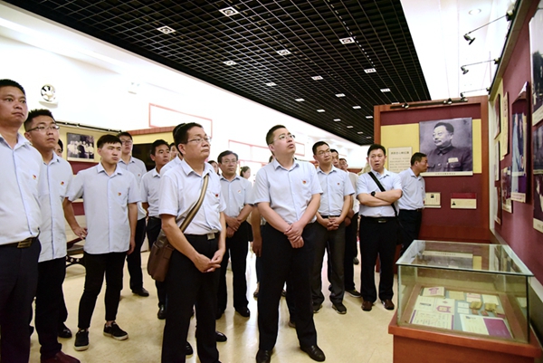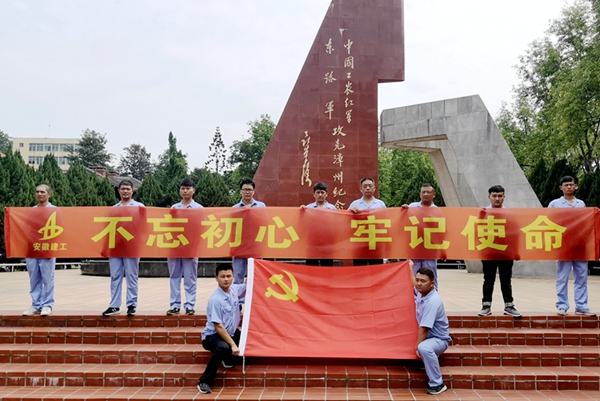 當(dāng)天,在大約200公里外的合肥市李克農(nóng)故居和渡江戰(zhàn)役紀(jì)念館,市政分公司黨總支和公司機(jī)關(guān)第一、第三黨支部正組織黨員接受革命傳統(tǒng)教育。在一幅幅歷史照片和一件件革命文物前,伴隨著解說(shuō)員的細(xì)致講解,大家放慢腳步,細(xì)致看,認(rèn)真聽(tīng),凝神想,讓革命教育入腦入心。在莊重而響亮的集體入黨宣誓聲中,展現(xiàn)的是新時(shí)代安徽路橋黨員的激情、責(zé)任與擔(dān)當(dāng)。