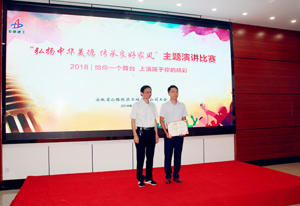 好家風(fēng)溫潤(rùn)心田,好家訓(xùn)世代傳承。7月20日下午,公司“弘揚(yáng)中華美德 傳承良好家風(fēng)”主題演講比賽在市政分公司多媒體會(huì)議室舉辦。來(lái)自公司各個(gè)崗位的9名參賽選手聲情并茂,娓娓道來(lái),以真摯的情感、樸實(shí)的語(yǔ)言談家風(fēng)、聊家事、話家常,詮釋出當(dāng)代路橋人的“好家庭、好家風(fēng)、好故事”。