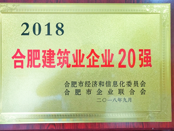 公司首次榮膺“合肥建筑業(yè)企業(yè)20強(qiáng)”