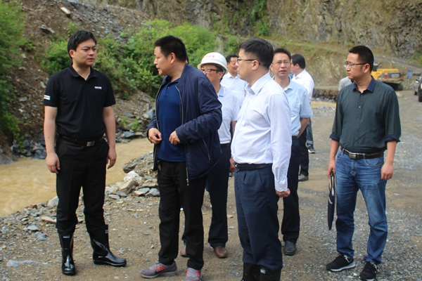 5月16日,績溪縣委副書記、縣長何剛深入S456項目現(xiàn)場督導防汛工作。副縣長凌成華、縣交通運輸局局長周正祥、道路分公司總經理張慶書等陪同。