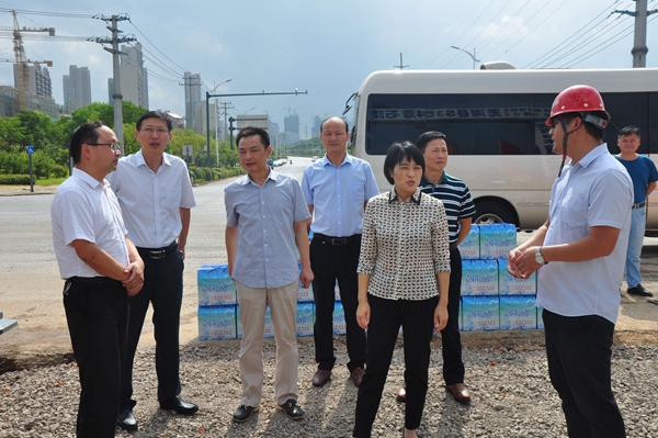 蕪湖縣長韋秀芳一行到S354項目開展“送清涼”慰問 發(fā)布時間:2019年08月12日 來源:市政分公司 發(fā)布人: 作者:文/孫亞南 圖/杜浩偉 瀏覽:3457次 8月9日上午,蕪湖縣委副書記、縣長韋秀芳一行到S354青弋江橋項目開展“送清涼”慰問活動,縣交通運輸局局長許小兵等陪同。 在施工現(xiàn)場,韋秀芳聽取了項目負責人關于施工進展和防暑降溫措施落實等方面工作匯報,對高溫天氣下堅守崗位的一線建設者表示感謝。韋秀芳一行送來了礦泉水等防暑降溫用品,叮囑大家要勞逸結合,時刻注意身體健康,項目要科學合理安排施工,確保工作人員在炎熱夏季作業(yè)安全。