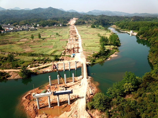 3月25日復(fù)興橋下部結(jié)構(gòu)基礎(chǔ)完成,3月31日蓮花山隧道右線削竹式洞門(mén)施工完畢,4月4日梁場(chǎng)首片梁板完成澆筑,4月5日路基一隊(duì)與二隊(duì)清表完成、便道實(shí)現(xiàn)貫通,全線路基、隧道、橋梁工程多點(diǎn)發(fā)力,工程建設(shè)穩(wěn)步推進(jìn)。期間,受降雨影響,白洋河橋圩區(qū)遭到破壞,項(xiàng)目黨支部迅速成立應(yīng)急施工小組,全天駐點(diǎn)搶抓工期,目前白洋河水中墩已全部澆筑完畢,鋼便橋也已經(jīng)完成鋪設(shè),如期完成既定任務(wù),減輕了雨季到來(lái)前的施工壓力。