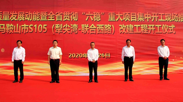 9月26日上午,增強(qiáng)高質(zhì)量發(fā)展動(dòng)能暨全省貫徹“六穩(wěn)”重大項(xiàng)目集中開(kāi)工現(xiàn)場(chǎng)推進(jìn)會(huì)(馬鞍山市分會(huì)場(chǎng))在公司承建的S105(犁尖灣-聯(lián)合西路)改建工程現(xiàn)場(chǎng)舉行,該項(xiàng)目開(kāi)工儀式同期舉辦。馬鞍山市委書(shū)記張?jiān)婪宄鱿瘍x式并宣布工程開(kāi)工,市委副書(shū)記、市長(zhǎng)袁方,公司黨委副書(shū)記、總經(jīng)理錢申春分別致辭。