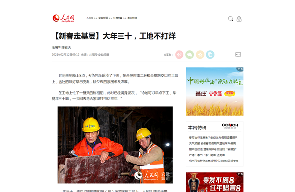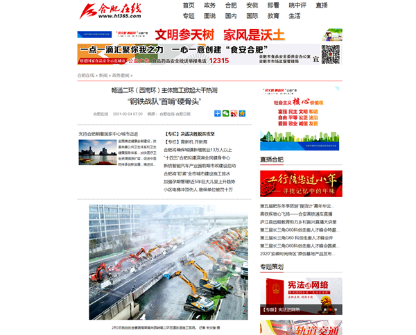安徽路橋公司承建的暢通二環(huán)(西南環(huán))工程是目前合肥市最重要的市政工程之一。自項(xiàng)目建設(shè)以來,備受社會各界的高度關(guān)注。特別是在春節(jié)期間,項(xiàng)目鉚足干勁、大干正酣的諸多場景,得到人民網(wǎng)、中國日報、學(xué)習(xí)強(qiáng)國、安徽衛(wèi)視、中安在線、安徽網(wǎng)、新安晚報、澎湃新聞、合肥日報等眾多媒體的全方位、多角度報道。
