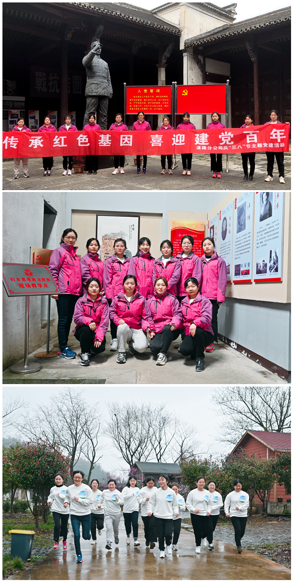 道路分公司開(kāi)展以“傳承紅色基因 喜迎建黨百年”為主題的慶三八國(guó)際勞動(dòng)?jì)D女節(jié)主題黨建活動(dòng)。女職工們懷著崇敬的心情來(lái)到?jīng)芸h云嶺新四軍軍部舊址紀(jì)念館,通過(guò)展館內(nèi)珍貴圖文及實(shí)物資料,了解革命烈士們可歌可泣的英雄事跡、革命歷程和崇高革命精神。在展館外,女職工在秀美山川間放聲齊唱《唱支山歌給黨聽(tīng)》,表達(dá)對(duì)黨和祖國(guó)的熱愛(ài)之情?;顒?dòng)最后,還組織了“青春助力十四五 綠色環(huán)保健康行”為主題的健康跑活動(dòng)。