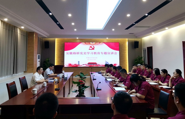 黨史學習教育開展以來,公司黨委高度重視、精心部署,堅決把開展黨史學習教育作為一項重大政治任務抓緊抓好,堅持“四個確?!保龅皆诓渴鹕先?、推動上有力、行動上迅速、成果上顯著,不斷從黨的百年輝煌征程中汲取精神滋養(yǎng)和前進力量,在“十四五”新征程、新起點上,努力譜寫美好路橋新畫卷,為打造“千億安徽建工”作出新貢獻。