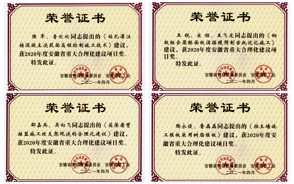 近日,安徽省勞動(dòng)競(jìng)賽委員會(huì)、安徽省總工會(huì)聯(lián)合評(píng)選的“2020年度安徽省重大合理化建議項(xiàng)目獎(jiǎng)”揭曉,公司《涉路橋梁多種型號(hào)預(yù)制梁板橋優(yōu)化為鋼板組合梁橋合理化建議》等10項(xiàng)成果入選。