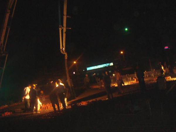 傍晚時分,項目部組織精干力量、調集性能良好的機械設備陸續(xù)進入引橋澆注場地。18:00隨著一陣隆隆的炮竹聲響過,淠望路大橋引橋首跨上部結構的混凝土澆注便正式開始了,此次澆筑的混凝土位于大橋10號墩與11號墩之間,混凝土體積320方?,F(xiàn)場施工人員克服重重困難,把安徽路橋人的特別能吃苦特別能戰(zhàn)斗的精神發(fā)揮得淋漓盡致;經(jīng)過十多個小時的連續(xù)工作,于2009年6月22日凌晨五點圓滿完成了首跨混凝土的澆筑,受到業(yè)主、監(jiān)理單位的肯定和贊揚,同時也為今后引橋上部結構混凝土的澆筑工作積累了經(jīng)驗。