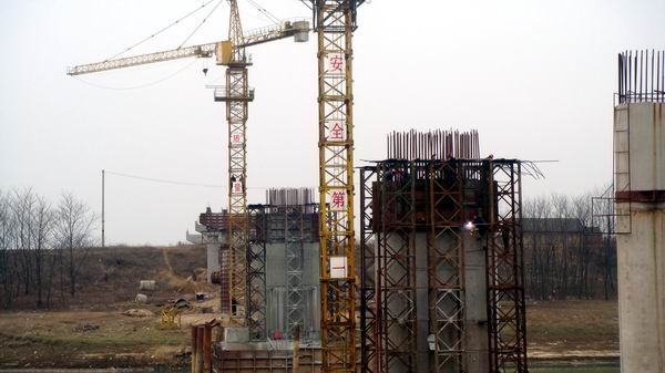 孫局長(zhǎng)一行在項(xiàng)目經(jīng)理梅占勝同志的陪同下,一起走上大堤視察了施工現(xiàn)場(chǎng),并詢問(wèn)了大橋施工的基本情況。梅占勝一一作了匯報(bào),孫局長(zhǎng)聽(tīng)完匯報(bào)后,對(duì)項(xiàng)目上為了節(jié)后上部結(jié)構(gòu)的正常施工而搶抓下部工程施工的計(jì)劃比較滿意,同時(shí)指出,三荻路項(xiàng)目市里今年降給予更大的關(guān)注,你們要抓緊施工,要注意質(zhì)量,也要重視安全,尤其是上部施工中的安全。