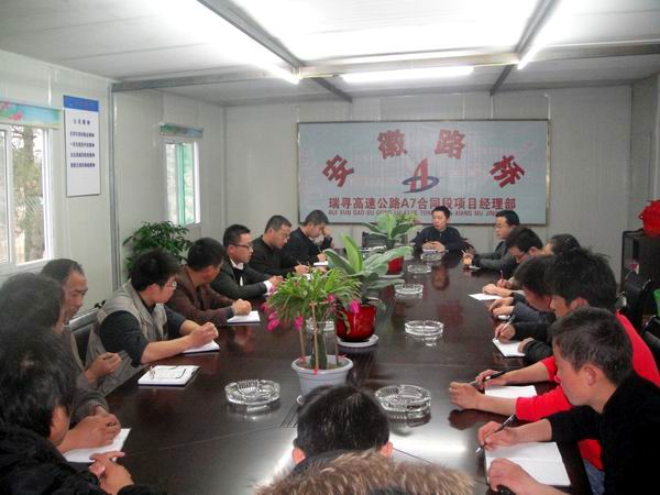 會上,劉大雷經(jīng)理向全體員工傳達(dá)了五屆二次會議的工作內(nèi)容要點(diǎn),并帶領(lǐng)大家重點(diǎn)學(xué)習(xí)了公司總經(jīng)理汪衛(wèi)東關(guān)于《夯實(shí)管理基礎(chǔ),拓展發(fā)展空間,為推動安徽路橋快速發(fā)展而努力奮進(jìn)》的工作報告。項(xiàng)目部成員結(jié)合A7標(biāo)施工實(shí)際,就汪總工作報告中闡述的2010年奮斗目標(biāo)和工作思路等內(nèi)容,進(jìn)行了深入探討。瑞尋高速工程作為我公司進(jìn)駐江西市場戰(zhàn)略中第一個中標(biāo)項(xiàng)目,A7標(biāo)的工作目標(biāo)不僅僅是完成這一具體工程,更深層次的是要打造品牌質(zhì)量,樹立起公司形象,進(jìn)而開拓江西市場。在具體思路上,要以“和諧、奮進(jìn)、創(chuàng)新、共贏”為宗旨,制定好周、月以及季度的施工計劃,強(qiáng)化項(xiàng)目管理,提高經(jīng)濟(jì)效益。同時,劉經(jīng)理提出工程的季度產(chǎn)值目標(biāo)和年度產(chǎn)值目標(biāo),希望各部門、各工區(qū)相互配合,共同完成每個階段的工程任務(wù)。