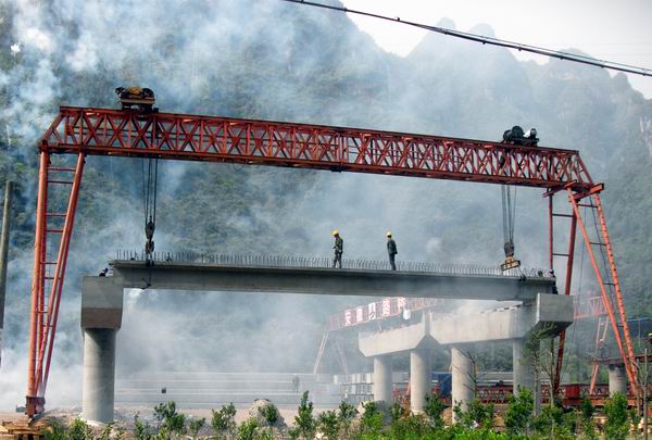 宜巴09標率先在全線范圍內(nèi)架設第一片梁