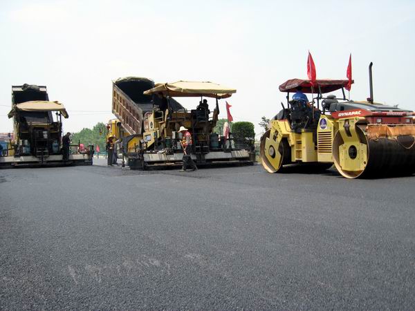 在項(xiàng)目部瀝青拌合場(chǎng)地,記者們?cè)诹壕珠L(zhǎng)及項(xiàng)目部經(jīng)理王煒生同志的帶領(lǐng)下,參觀了橡膠瀝青的拌合設(shè)備,了解了整個(gè)瀝青混凝土的拌合過(guò)程,并進(jìn)行了實(shí)地拍攝。