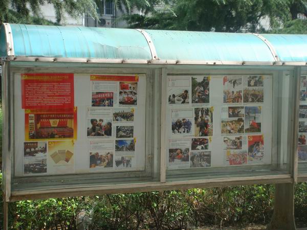 在隆重紀(jì)念中國共產(chǎn)黨成立89周年的日子里,四分公司黨總支根據(jù)公司黨委的部署要求,積極開展創(chuàng)先爭優(yōu)活動,在后勤基地,利用宣傳櫥窗,舉辦創(chuàng)先爭優(yōu)活動宣傳圖片展,引來不少行人駐足觀看。
