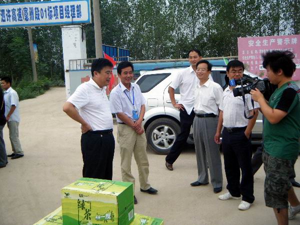 劉局長等對我項目的各個方面工作都給予了很高的評價,對我項目人員克服持續(xù)高溫天氣等困難努力施工表示贊賞,并致以親切的慰問。同時劉局長指出,安徽路橋人在天氣如此炎熱的情況下不怕困難,精心施工,這條路凝結了每位員工的心血和汗水。希望大家在保證質(zhì)量的前提下繼續(xù)努力、更進一步,爭取早日完成施工任務。