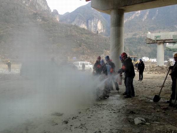 為加強(qiáng)冬季防火安全工作,1月16日,宜巴09標(biāo)在橋梁一工區(qū)組織進(jìn)行防火演練,以檢驗并增強(qiáng)我部發(fā)現(xiàn)安全隱患、及時處理的應(yīng)急能力。本次演練由項目部分管安全工作的黨支部書記邵建新?lián)慰傊笓],安全部部長萬和國擔(dān)任現(xiàn)場指揮,項目總工、各工區(qū)區(qū)長和現(xiàn)場施工班組負(fù)責(zé)人到場參與演練。