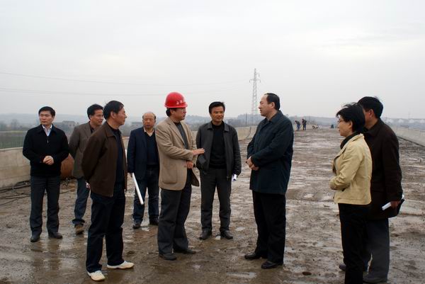 3月19日上午9:20,蕪湖市政府副市長朱誠在市交通局、公路局、蕪湖縣政府等相關(guān)領(lǐng)導(dǎo)陪同下,來我青弋江大橋視察指導(dǎo)工作。朱市長一行下車后步行上橋,看到我大橋護(hù)欄、砼橋面已全部完成后,非常高興。在聽了基本情況匯報后,他指出:這座橋是這條路的龍頭,希望能早日通車,并對項目部提出要求,4月15日一定要完成瀝青路面及附屬工程,確保簡易通車。