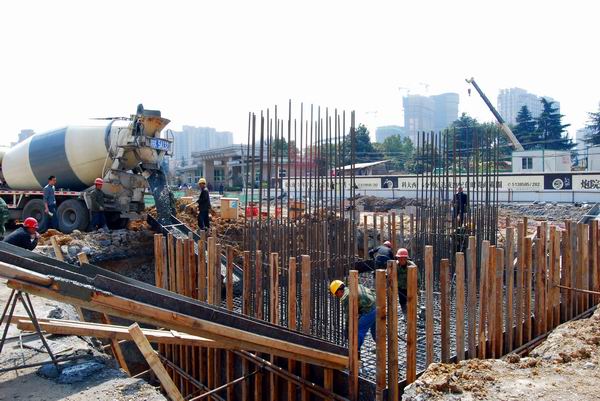 為保證本承臺的順利澆注,項目部在施工前進行了詳細的技術(shù)、安全、質(zhì)量交底,還專門召開了協(xié)調(diào)會,進行人員、材料等方面的組織。項目負責人旁站對澆注過程進行全程指導;質(zhì)量、安全人員全程監(jiān)控;其他人員各司其責,為澆筑的順利完成提供了有力保障。