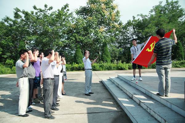 下午,大家興致勃勃的前往獨(dú)山革命舊址群參觀瞻仰。獨(dú)山是革命老區(qū),它為中國革命和民族解放事業(yè)作出了巨大貢獻(xiàn),同時(shí)也付出極大的犧牲。我們?nèi)w黨員在汪書記的帶領(lǐng)下,在莊嚴(yán)的紀(jì)念塔下,重溫入黨宣誓誓詞。
