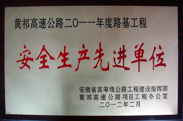 黃祁08標獲黃祁高速2011年度“安全生產(chǎn)先進單位”