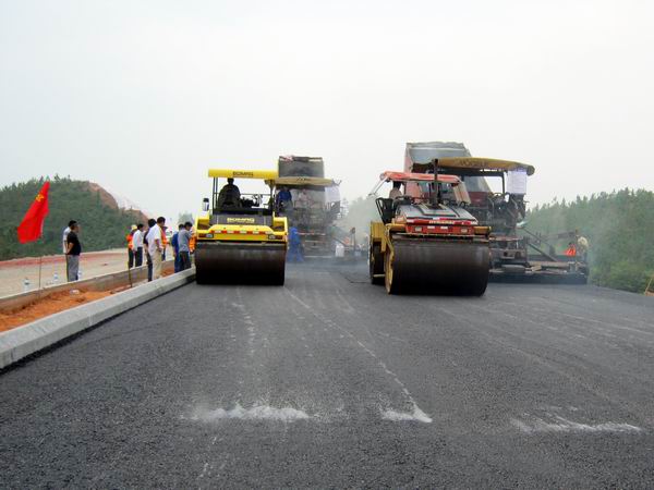 為了確保此次試驗段的順利攤鋪,項目部研究制定了詳細(xì)的施工方案,并提前召開了專項方案技術(shù)交底會,對施工工藝流程、施工組織安排及注意事項等進(jìn)行了詳細(xì)的交底。28日早上,在項目領(lǐng)導(dǎo)的精心安排和組織下,我部工程技術(shù)人員和作業(yè)人員對瀝青試驗段攤鋪現(xiàn)場和瀝青拌和站進(jìn)行準(zhǔn)備工作和設(shè)備最后檢查。上午11時,伴隨著陣陣鞭炮聲,此次瀝青試驗段按照預(yù)先計劃順利攤鋪,現(xiàn)場機械在指揮人員的引導(dǎo)下有條不紊的作業(yè)。最終經(jīng)過我部廣大施工作業(yè)人員的齊心努力,下午18時順利完成此次ATB-25瀝青碎石上基層試驗段的攤鋪。