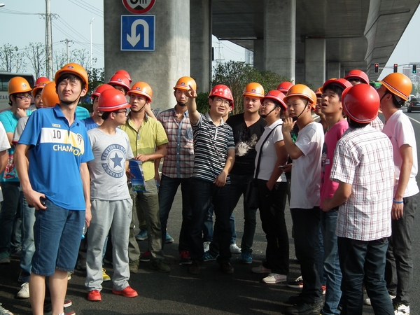 下午15:00,在項(xiàng)目部會(huì)議室,該項(xiàng)目總工利用PPT圖文并茂的給學(xué)生們介紹了阜陽(yáng)北路高架工程概況、施工工藝、工程質(zhì)量控制。隨后,學(xué)生們來(lái)到施工現(xiàn)場(chǎng),該項(xiàng)目總工將學(xué)校中學(xué)習(xí)到的理論知識(shí)與現(xiàn)場(chǎng)施工實(shí)際相結(jié)合,對(duì)阜陽(yáng)北路高架橋梁的整個(gè)施工工藝流程作了深入淺出的講解。
